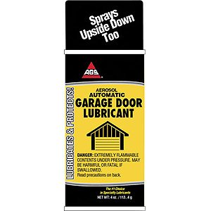 Garage Door Lube, Container Type Aerosol, Size oz. Also good for cables, bushings, . After using this product on my garage door, it operates much better and quieter. No more noisy garage door, this product resolved the issue.